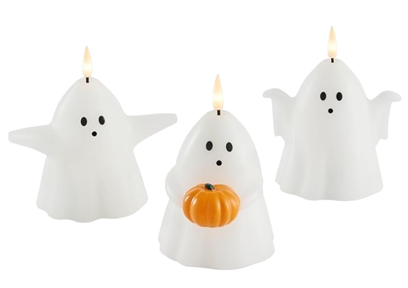 Safety first met deze drie led-kaarsen in spookvorm met flikkerende vlam.