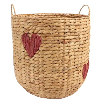 Opgeruimd staat gezellig: deze mand van hyacint met rode ingeweven hartjes is een mooie oplossing om speelgoed, knuffels en dekentjes stijlvol op te bergen. Zet ‘m in de kinderkamer, op de speelkamer of naast het bed voor een vrolijke én handige opbergplek.